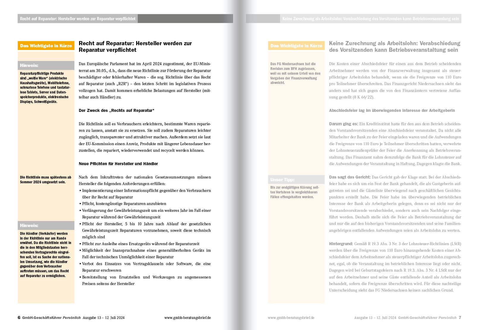 Das Europäische Parlament hat im April 2024 zugestimmt, der EU-Ministerrat am 30.05., d. h., dass die neue Richtlinie zur Förderung der Reparatur beschädigter oder fehlerhafter Waren – die sog. Richtlinie über das Recht auf Reparatur (auch „R2R “) – den letzten Schritt im legislativen Prozess vollzogen hat. Damit kommen erhebliche Belastungen auf Hersteller (mittelbar auch Händler) zu.